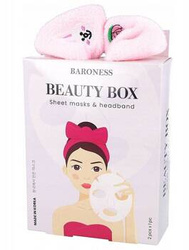 Beauty Box zestaw maseczek w płachcie z opaską kosmetyczną, Baroness, 21 g + 21 g