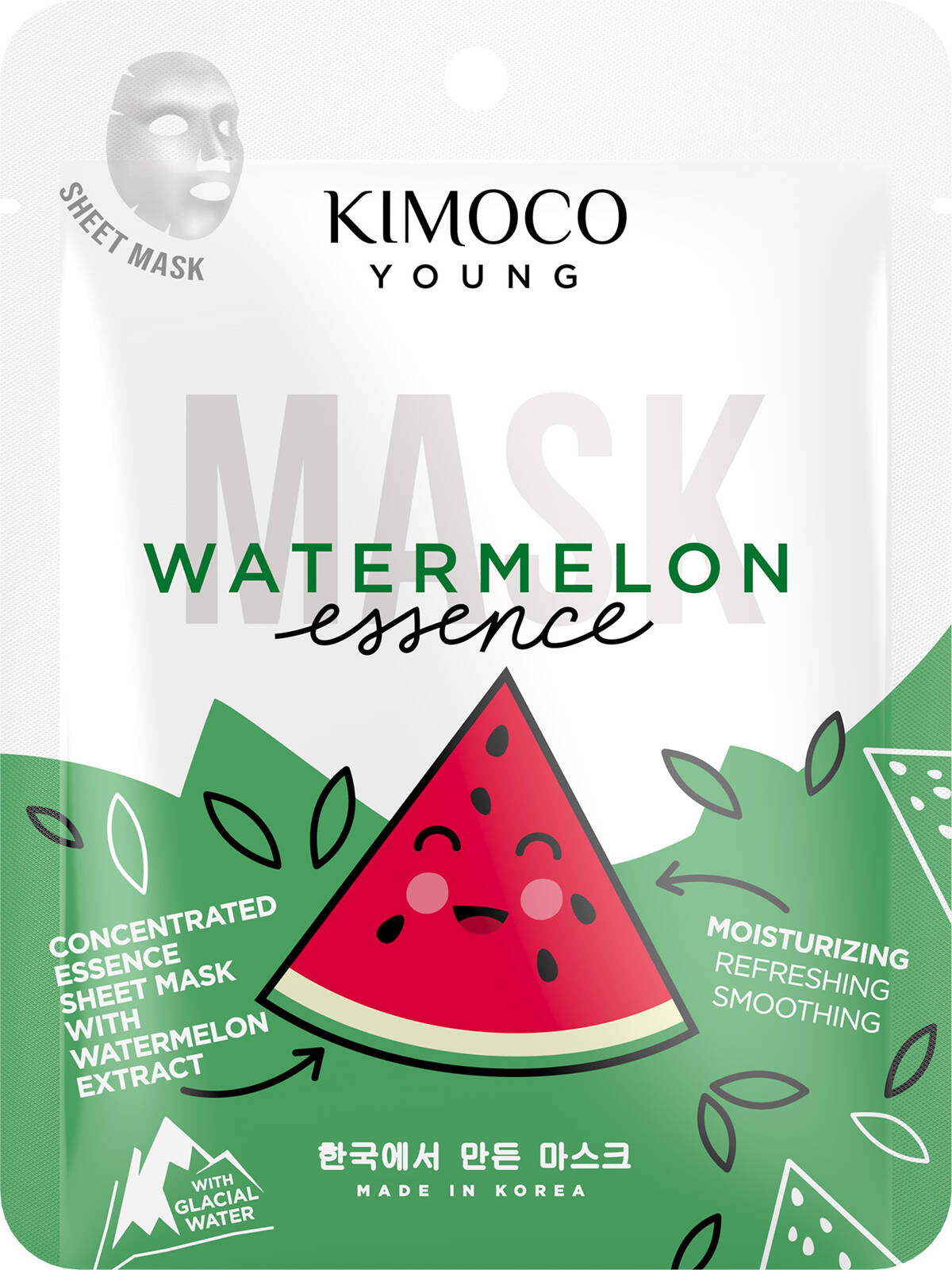 Nawilżająca maska w płachcie z ekstraktem z arbuza i wodą lodowcową, Kimoco young, 25ml