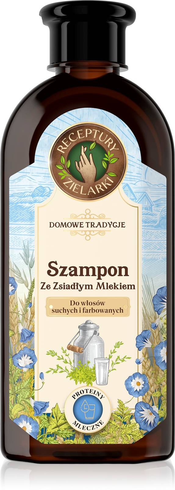 Szampon ze zsiadłym mlekiem do włosów suchych i farbowanych, Receptury Zielarki, 350 ml