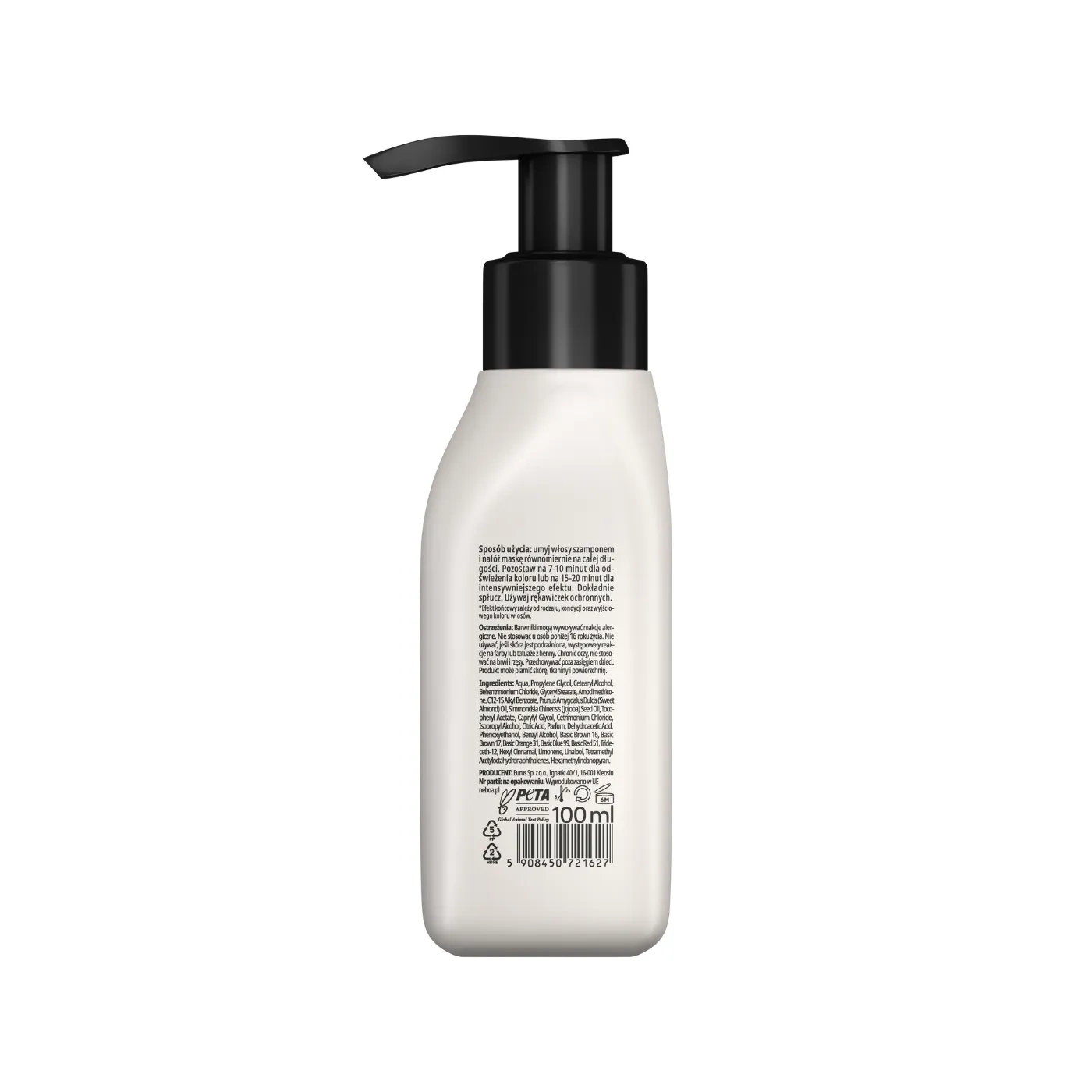 Sposób użycia: Umyj włosy szamponem i nałóż maskę równomiernie na całej długości. Pozostaw na 7-10 minut dla odświeżenia koloru lub na 15-20 minut dla intensywnego efektu. Dokładnie spłucz. Używaj rękawiczek ochronnych. *Efekt końcowy zależy od rodzaju, kondycji oraz wyjściowego koloru włosów.