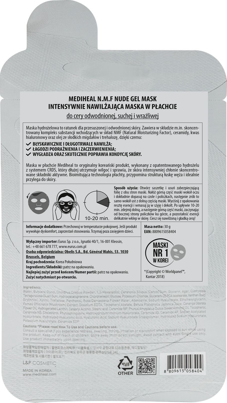 Maska w płachcie do twarzy hydrożelowa nawilżająca N.M.F Nude Gel Mask, 30 g