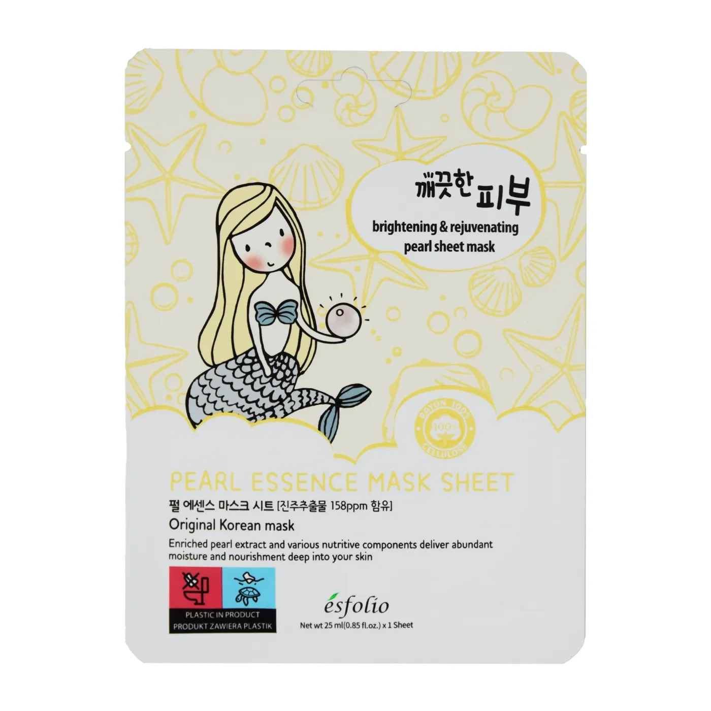 Maska w płachcie z ekstraktem z pereł rozświetlająco - odmładzająca, Esfolio, 25 ml