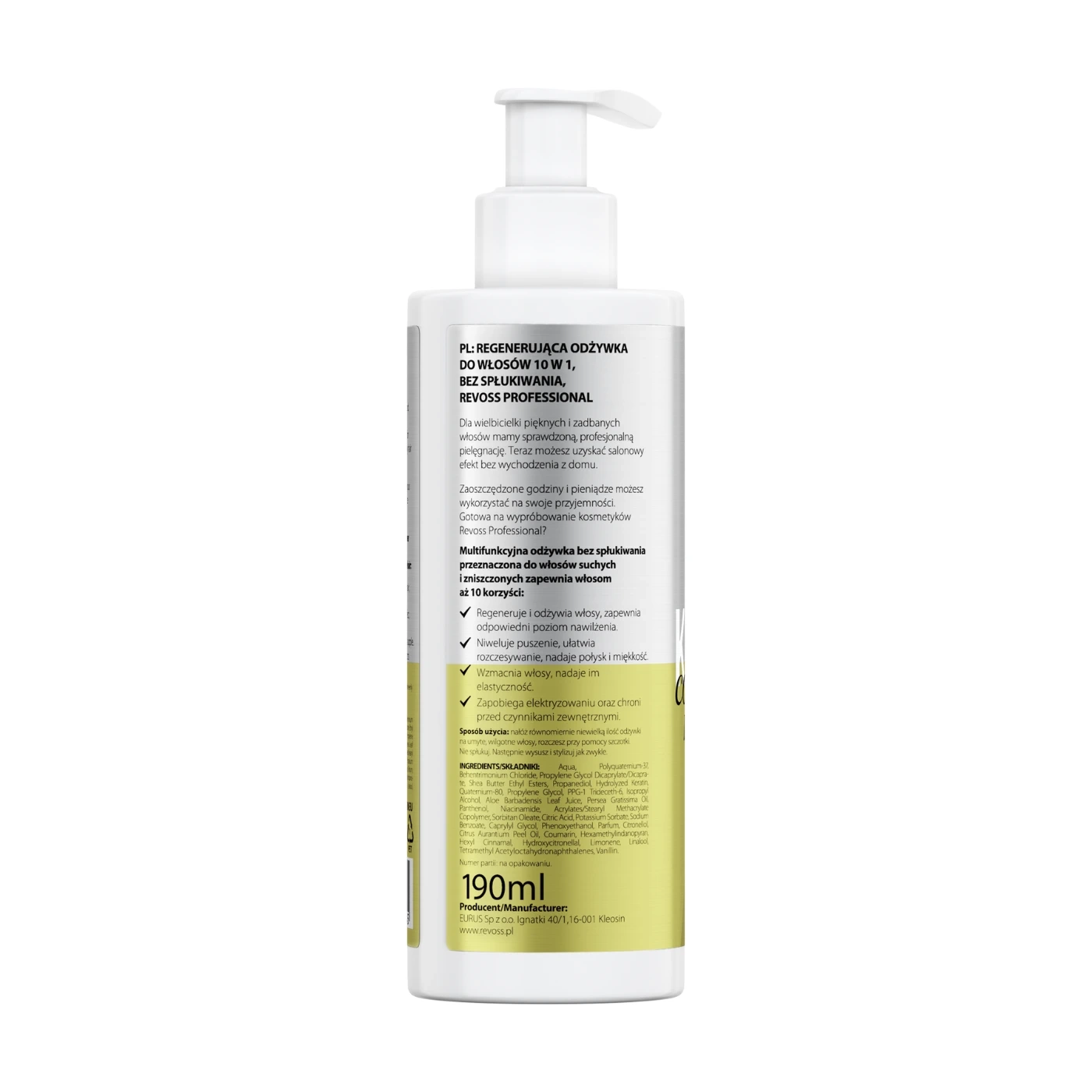 Odżywka do włosów z keratyną 10w1 regenerująca, Revoss, 190 ml