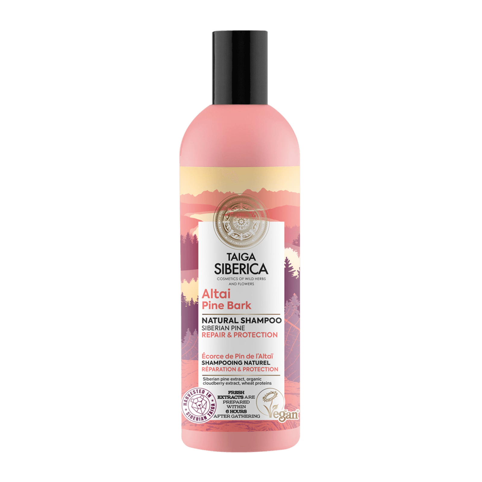 Naturalny szampon do włosów z korą z sosny Ałtajskiej to ratunek dla łamliwych i zniszczonych włosów. Bogata formuła szamponu odżywia włosy na całej długości, od cebulek po same końce. Ekstrakt z sosny syberyjskiej to połączenie witamin C, F i kwasu ferulowego, które wspomagają ochronę włosów. Organiczny ekstrakt z maliny moroszki pomaga przywrócić włosom blask, a proteiny pszenicy je wzmacniają.