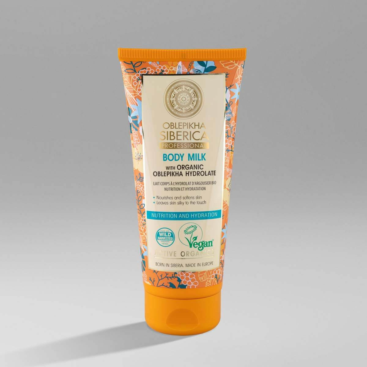 Wegańskie, odżywczo - nawadniające mleczko do ciała na bazie hydrolatu z rokitnika, Natura Siberica, 200ml