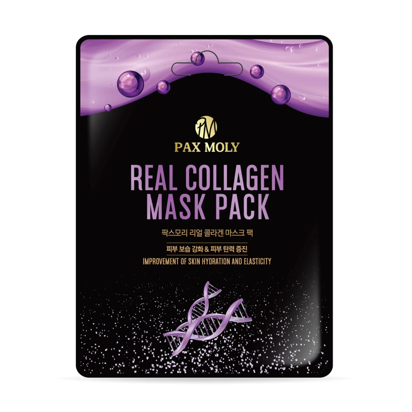 Maska w płachcie Pax Moly Real Collagen zawiera kolagen oraz bogactwo naturalnych ekstraktów takich jak adenozyna, kwas hialuronowy, betaina, ekstrakty z komórek macierzystych żeń szenia oraz anyż, które sprawiają, że skóra staje się głęboko odżywiona, oczyszczona, odświeżona i ujędrniona. Dodatek probiotyku dba o mikrobiom skóry, działa ochronnie i nawilżająco. Maska doskonale dopasowuje się do twarzy, zapewniając skórze komfortowe stosowanie