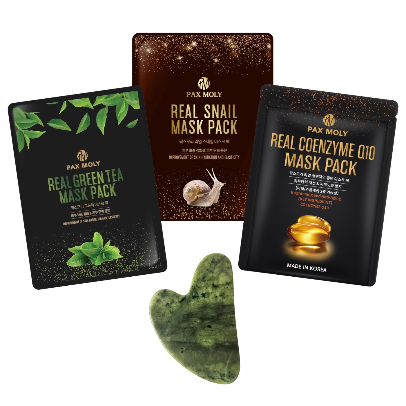 Zestaw Beauty Set 3x maseczka to twarzy + kamień Gua Sha, Pax Moly, 3x25ml + 1szt.